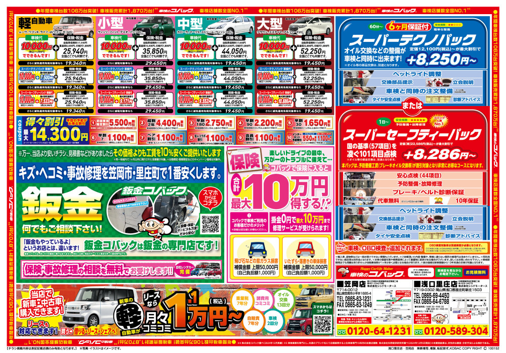 笠岡・浅口を中心に車検サービスを提供している 車検のコバック笠岡店・浅口里庄店は年間 約4,500台以上のお客様にご支持をいただいております。また定期点検、一般修理はもちろんのこと、新車や中古車の販売、車のキズ・へこみ直しも得意としています。 笠岡・浅口周辺のお客様に寄り添った親身なサービスを心がけ、お客様の大切なお車をトータルでサポートさせていただきますので、お気軽にスタッフまでお声がけください!